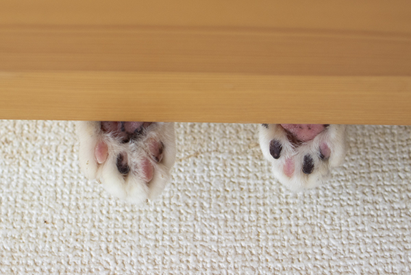 ウメちゃんの肉球。肉球も三毛猫っぽい。