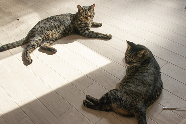 ビーたんとタマオ、仲良く日向でまったり。