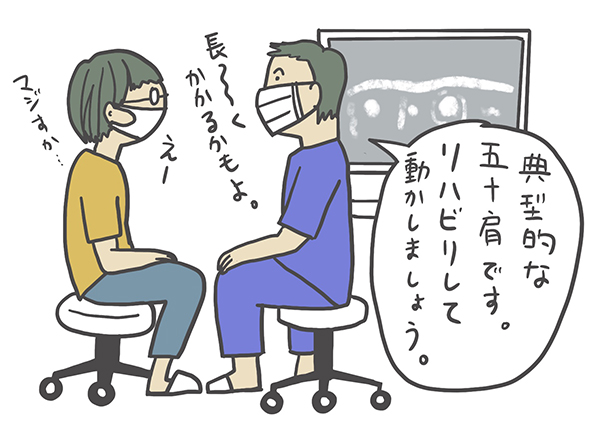 先々月とは違う先生。超音波で痛む箇所を診てもらう。上腕二頭筋腱が腫れ水が溜まってる、これは五十肩の典型的な症状ですねえ〜リハビリして動かしていきましょうという診察。もっと痛みが増したら注射、だそうです。(友人マユミちゃんは、それ一発で楽になったらしい)