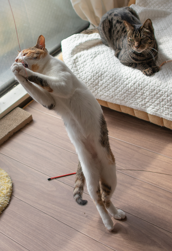 シニアちゃんズの食べ残しを全てたいらげるミケーネ。