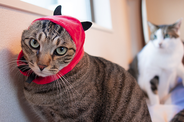 デビルちゃん コメントを残す まゆみちゃんちへ遊びに行く。途中、ネコスポット発見だにゃー! まゆみちゃんちの猫ズにキタンクラブの「かわいいかわいいねこハロウィンちゃん」のデビルをかぶせてみる。 マロンくん ミンちゃん ミンちゃん、激おこプンプン丸です ポンちゃんですら嫌がる。皆さん「ガックリ」したり怒ったりで申し訳ない気分に……。