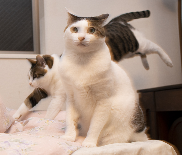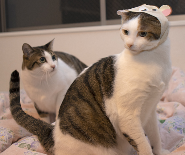 まゆみちゃんちのネコ コメントを残す マロンくん まゆみちゃんちへ遊びに。 コリラックマのかぶりもの、ポンちゃんに装着。かなり心が折れてる模様…すまぬ。 飛んでるミンちゃん。ポンちゃん、早くヒゲが生えるといいね……。 丸鶏のオーブン焼きの中には栗おこわ。いつも手の込んだご馳走ありがとう!