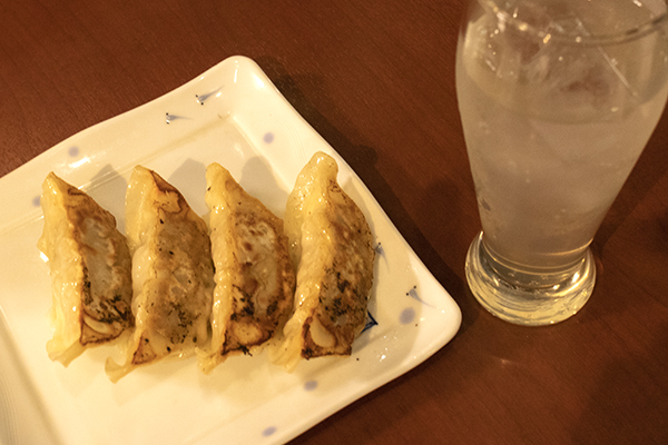 1件目「墨花居(ボッカキョ)田無店」バナエさんは餃子とレモンサワー。餃子はニンニク無しの肉多め。
