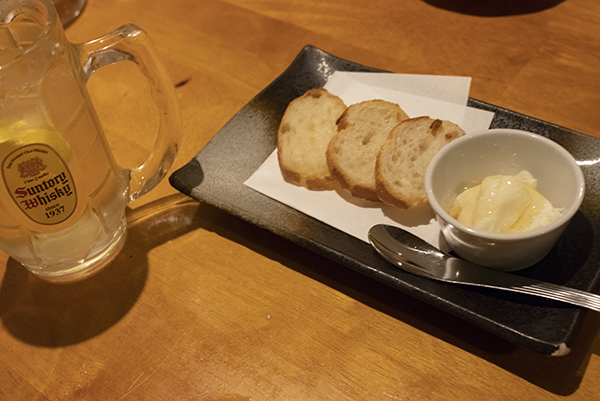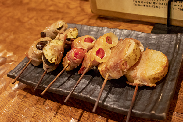 肉串巻き2人分。長芋、プチトマト、ナス。デフォルトはレタス巻きだけど、ハシゴ酒するにはヘビーという事でお店のお兄さん(自称ミッキー…)が気を利かせてくれた。塩加減が良く美味しかった。私らはパスしたけど、この他にシメのお味噌汁とプチおむすびもサービスされるらしい。