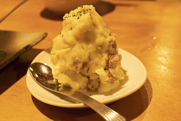 燻製サバといぶりがっこのミニポテトサラダ。日本酒に合いそうなポテトサラダ。