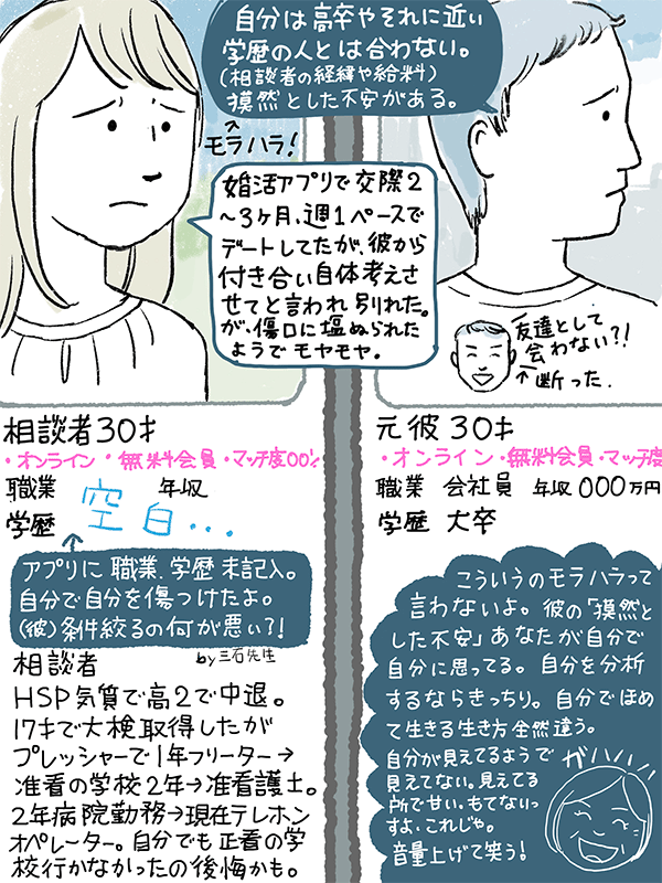 相談者、不安を克服して「自分が相手を選ぶ」自信が身につくといいな〜と思いました。