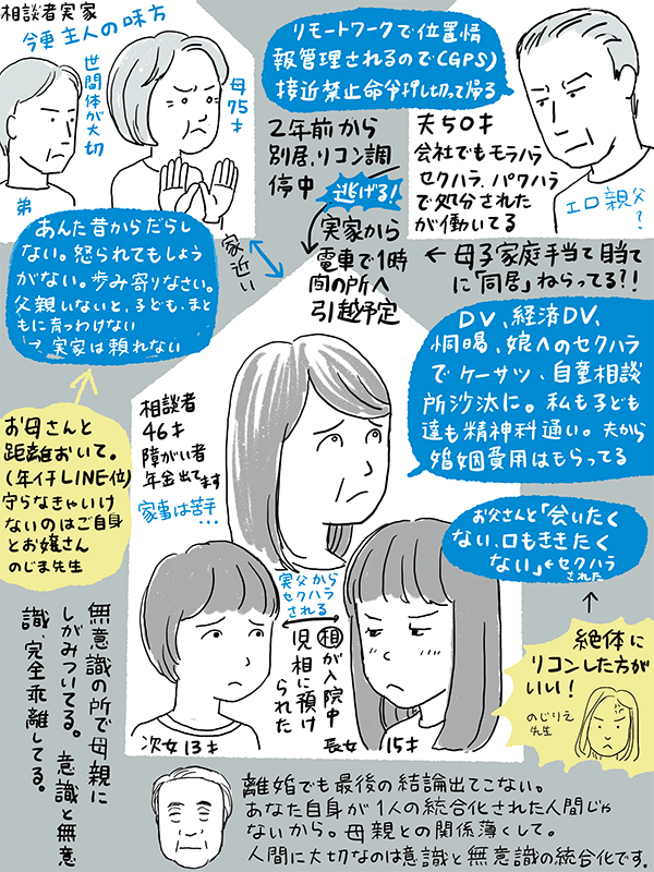 相談者と娘達は、カウンセラーと児相から引越し推奨され電車で1時間程度の所へ引っ越す予定だが実家とこの先どうつきあったらいいか?という46歳女性のご相談。