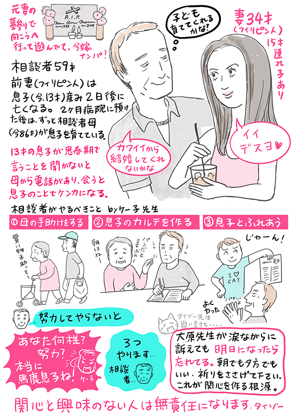 86才の母と実子に対して、どうやって接していいのか59才男性のご相談。