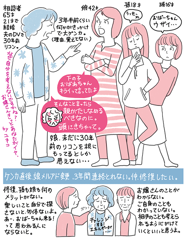 3年半前娘と大ゲンカして音信不通に。娘との関係を修復したい65才女性のご相談。