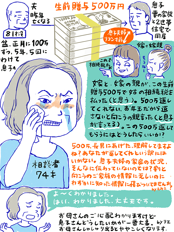 夫が息子に生前贈与した500万円を、息子の嫁と嫁の親が持ってっちゃって返してくれない。