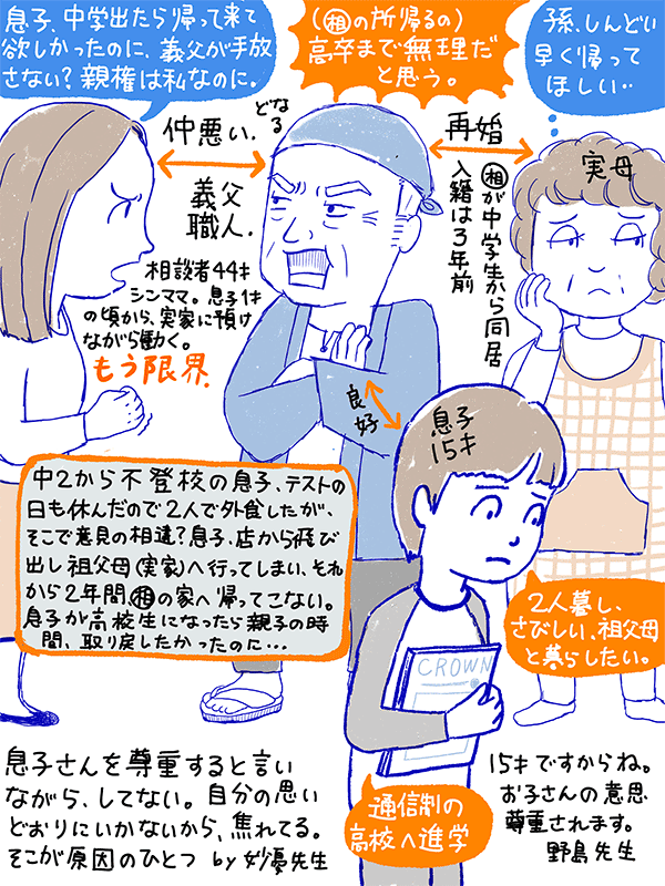 今年の7月16日の相談を彷彿とするような。あれは息子が祖父母の家から帰って来ないって親を相手に裁判してた。