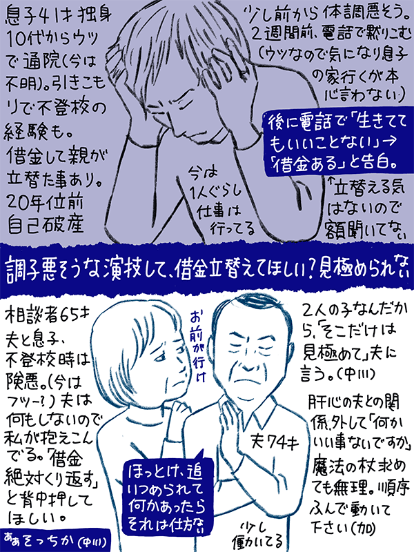 借金立て替えたところで、息子の借金癖は治らないよ?という回答がほしくての相談だったのかにゃ?