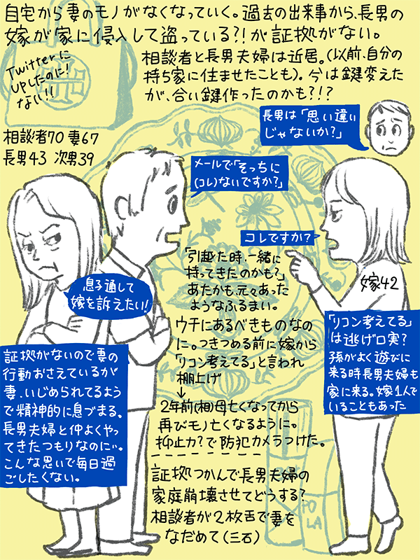 妻は、長男を通して嫁を訴えたいというが証拠がないので止めているが