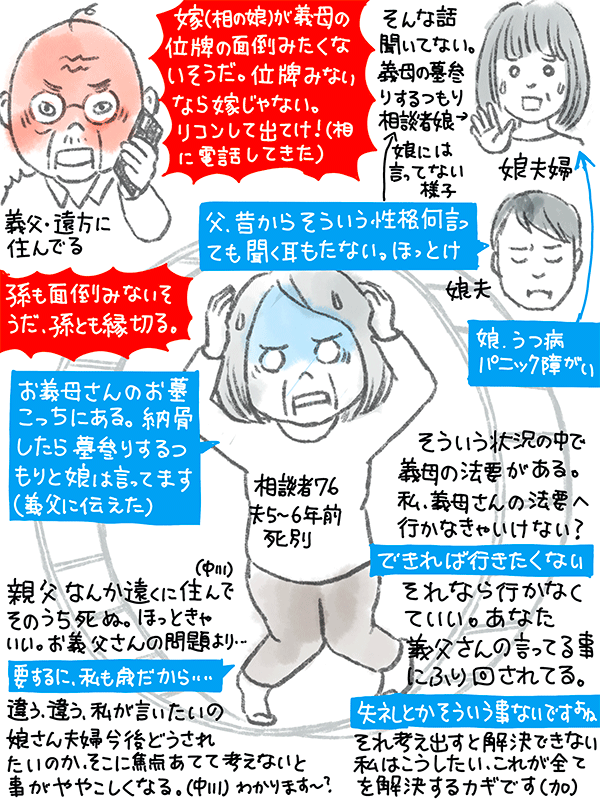 娘の舅から「嫁(相談者娘)が義母(姑)の位牌の面倒みたくないと言うが、お母さん(相談者)どう思う?