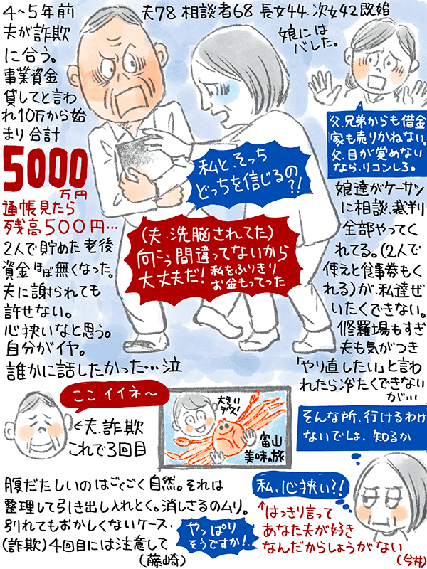 4〜5年前、夫が詐欺にあい、老後のために二人で貯めたお金5000万円が無くなった。