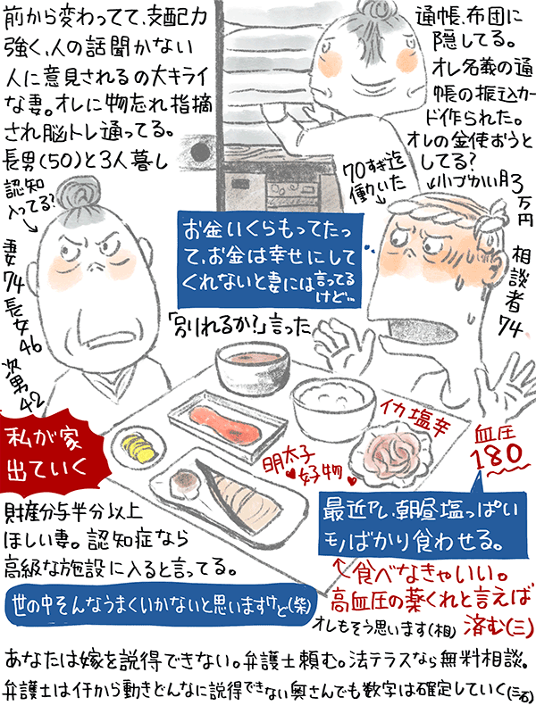 今まで俺が稼いだお金、半分に分けるにはどういう風に、誰に相談したらいい?という74歳男性のご相談。