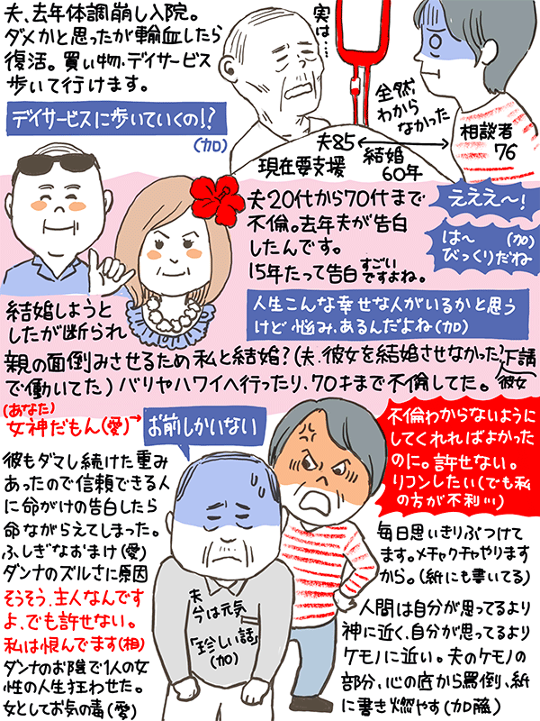 昨年体調を崩し、もうダメかと思った夫が「20代から70まで不倫していた」と告白。