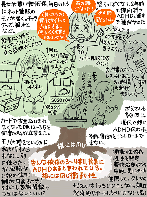 同居の長女が買い物依存、通販で買ったものが入りきらず、リビングまで押し寄せてきてる。