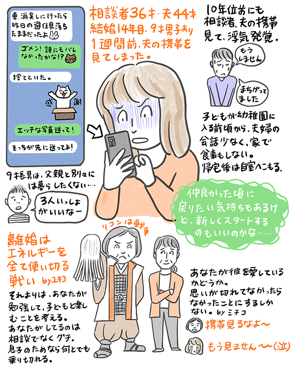 夫の携帯を見てしまったら、2度目の浮気が発覚した。再構築か別れるかという36歳女性の相談。