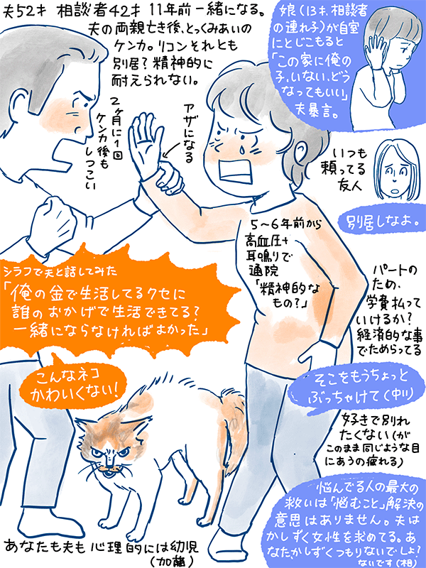 2ヶ月ごとに夫と取っ組み合いのケンカ。離婚したほうがいいか、別居した方がいいか?高血圧になり精神的にも辛いが、実家とは仲悪いし、経済面でも不安でためらってしまうという42歳女性のご相談。くわしくはコチラいつもありがとうございます。キャッチ画像のネコちゃん、スコかな?かわいいニャン。