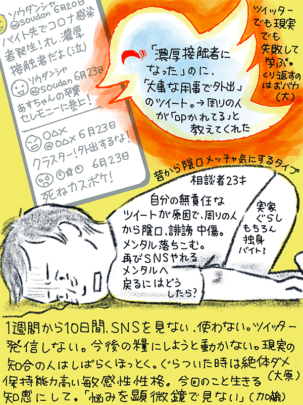 濃厚接触者だなんて言わなくていいことをつぶやくなんて、相談者はうっかりもの!
