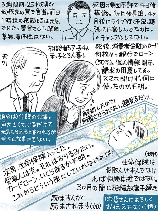 死後、消費者金融のカードや銀行のローン(50万円)が発覚。