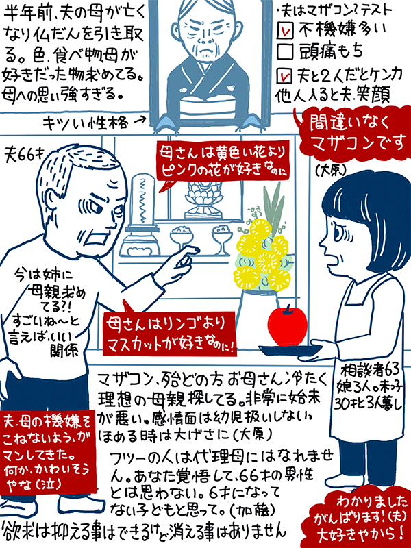 母親に対しての思い強すぎる夫、どう接していけば?という63歳女性のご相談。