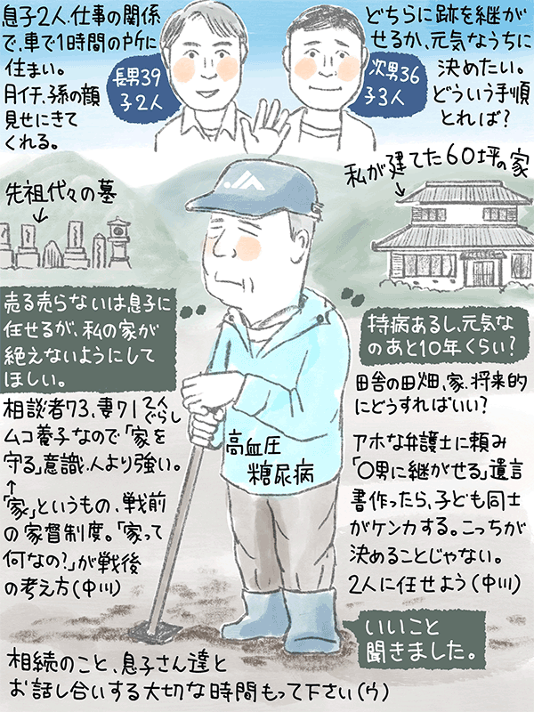 元気なうちに、家、田畑、先祖代々のお墓を二人の息子のどちらかに継いでほしいが
