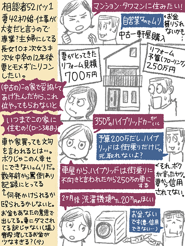 浪費という訳ではないが、良いものを求める妻。彼女の不満消してきたつもりだが、家を買っても車を買っても文句を言われる。もうムリ、ぼくじゃこの人を幸せにできない。次女が中学卒業する12年後に妻と揉めずに離婚したいが、その時までにどのような準備をしたらいいのか?という52歳男性のご相談。