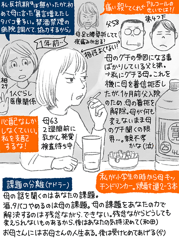 母に禁煙禁酒に協力するから病院を探そうと言ったのに「私を支配するな!」。
