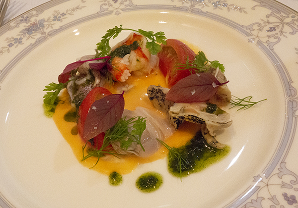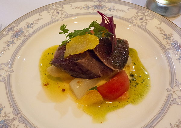 かつお・白アスパラ・オレンジのマリネ。白アスパラのマリネがシャキシャキ、カツオが大きくて少食な自分はこれでお腹いっぱい。
