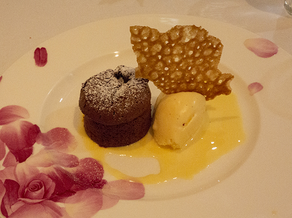 これに紅茶orコーヒーorハーブティー とお茶菓子(ガレットと生チョコとスポンジ菓子、実はこれ。ほぼパス。もうお腹いっぱい)