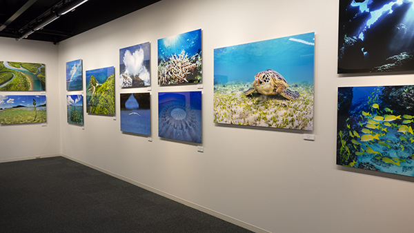 ヤマネコから海中まで網羅。今やフグのミステリーサークルは狙いやすい被写体らしい。昨年の富士の展示よりプリントの発色が良く見えるのは壁面色のせい?