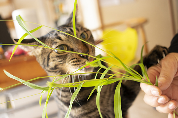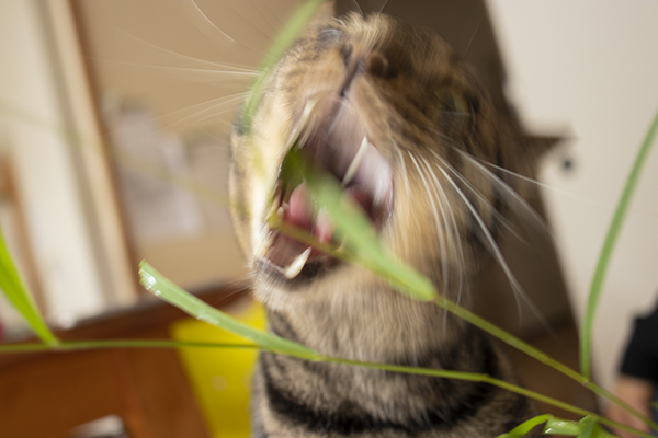 Katoさんにネコ草もらって大興奮のビーたん。激しすぎるー。