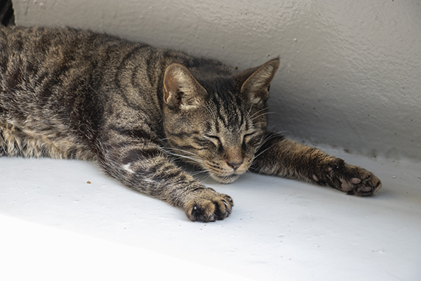 暑いけど、風はある。タマオ、ベランダでまったり。