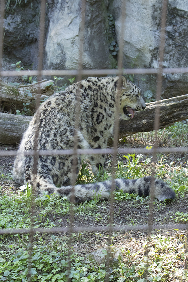 ユキヒョウのフクちゃん。すっかり夏毛で小さく見える。ずっと口呼吸。暑いの苦手なんだねー。