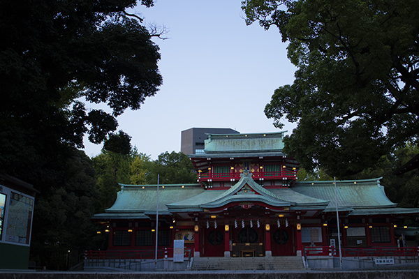 夕方、ちょっと散歩。八幡様の青銅葺きの屋根。こんなに汚かったっけか?と思う。