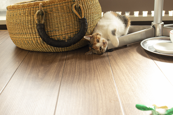 ブンブンに無我夢中になり、部屋中駆け回る。