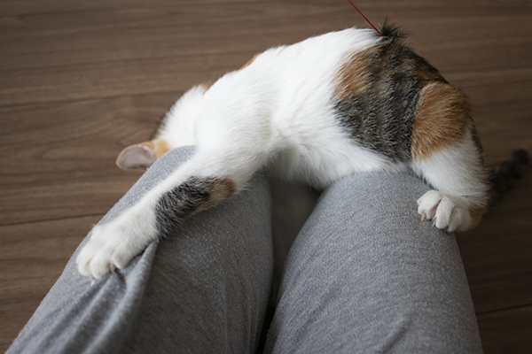 マユミちゃんちのポンちゃんといい、太もも好きの猫は一定数いるようですね。
