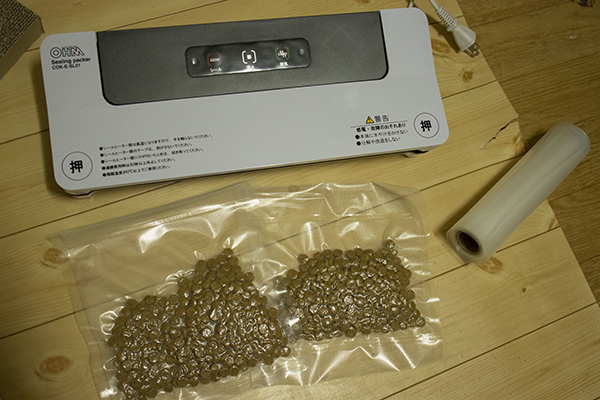 密封パック機 コメントを残す オーム電機の密封パック機(OHM COK-E-SL01)買った。ヨドバシで¥5470。 ビーたん、カナンの500g袋でも残りが1/3位になると食べなくなって捨てる事が多いので。 小袋に分けて真空保存すれば最後まで食いつきがいいというネット情報を試してみる。 こんな「違いのわかる猫」に育てた覚えは無いのだが。困ったもんだ。 1日の分量(4キロ猫の給餌量56g)ずつパック。簡単〜。 あとは、粒の角で袋に穴が開かない事を祈る。 シニアちゃんズは今日も定位置。