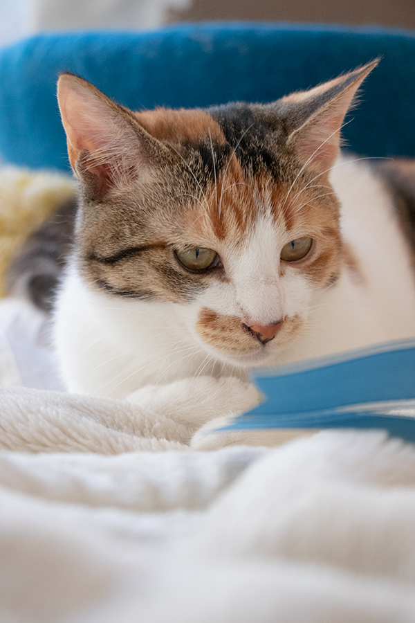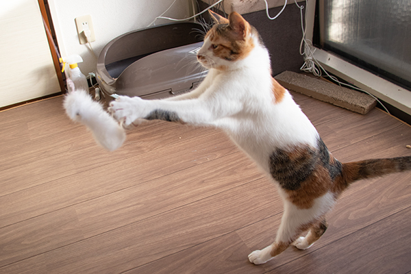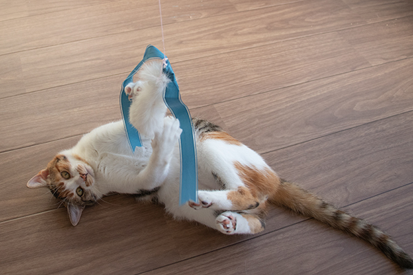 青いリボンで遊ぶミケーネたん。
