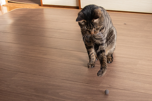 自分の毛玉で遊ぶビーたん。