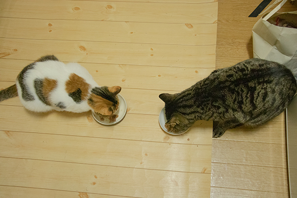 ビーたんとミケーネがお食事中。