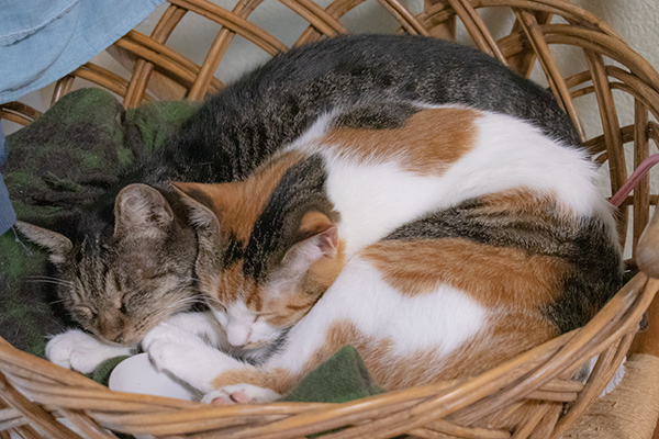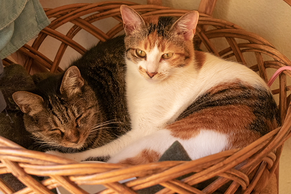 エアコン直下の猫ベッドにタマコとミケーネ。