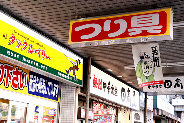 昔は、富岡1丁目のバス停前に釣具屋があった。