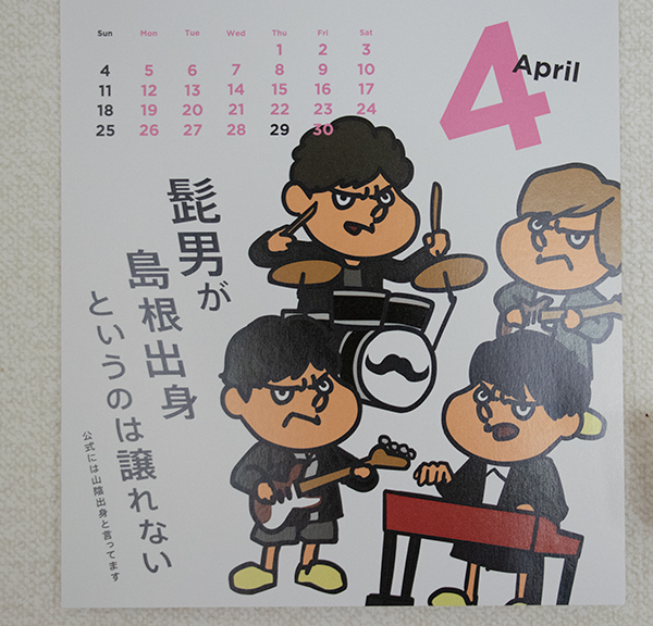 昨日のミケーネたんの背景「髭男」は「島根自虐カレンダー2021」です。