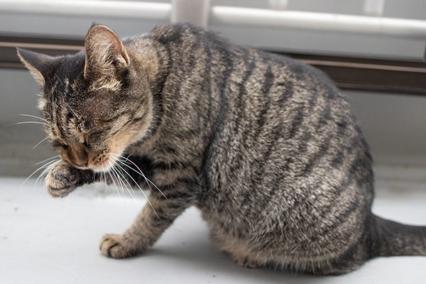 タマコが顔洗ってる。そろそろ雨?