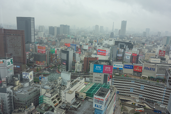 プラザホテル横。雨で都庁すら見えない。