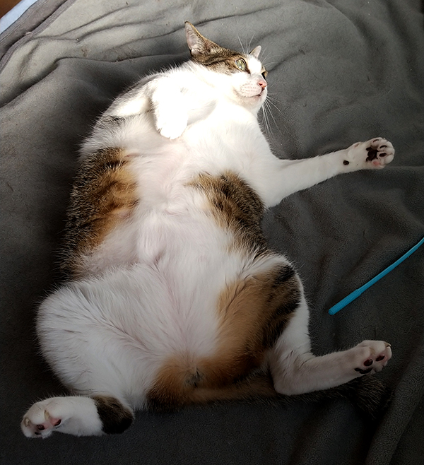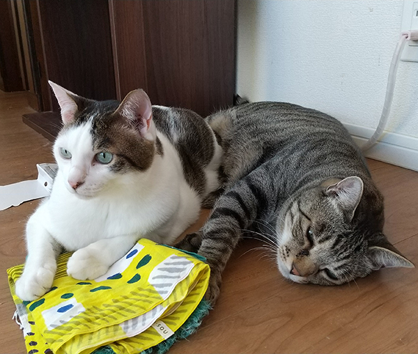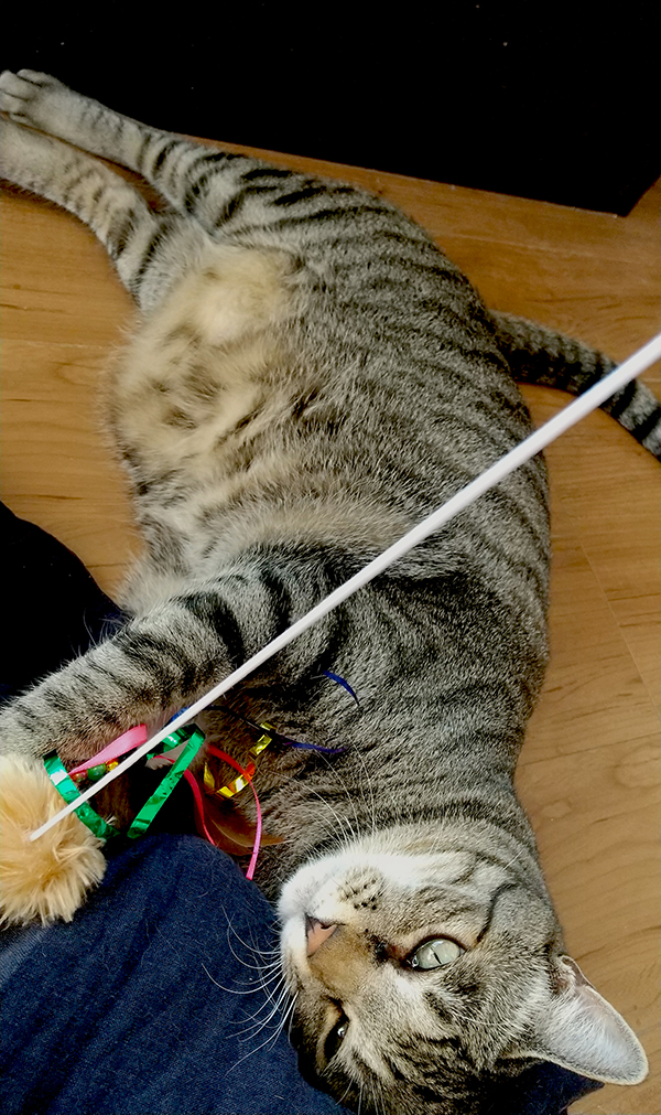 仔猫だった時はこのオモチャ大好きだったのに、今はまったりじゃれる程度(哀)