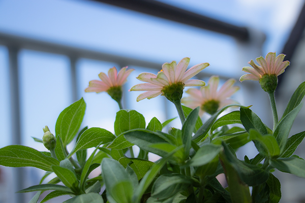 ベランダの鉢に小花タイプの百日草植えた。よく咲く。